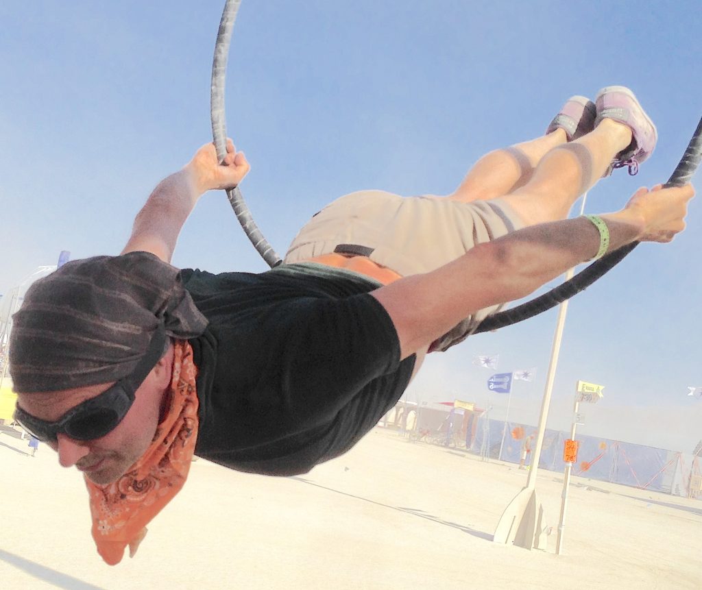 Ariel Llama dances improvisationally three times a week, and has been a dance enthusiast – dancing and taking classes and workshops – for more than twenty-five years. He has deejayed more than 200 ecstatic dances. He is also a singer/songwriter and a kinetic artist (see this YouTube link).